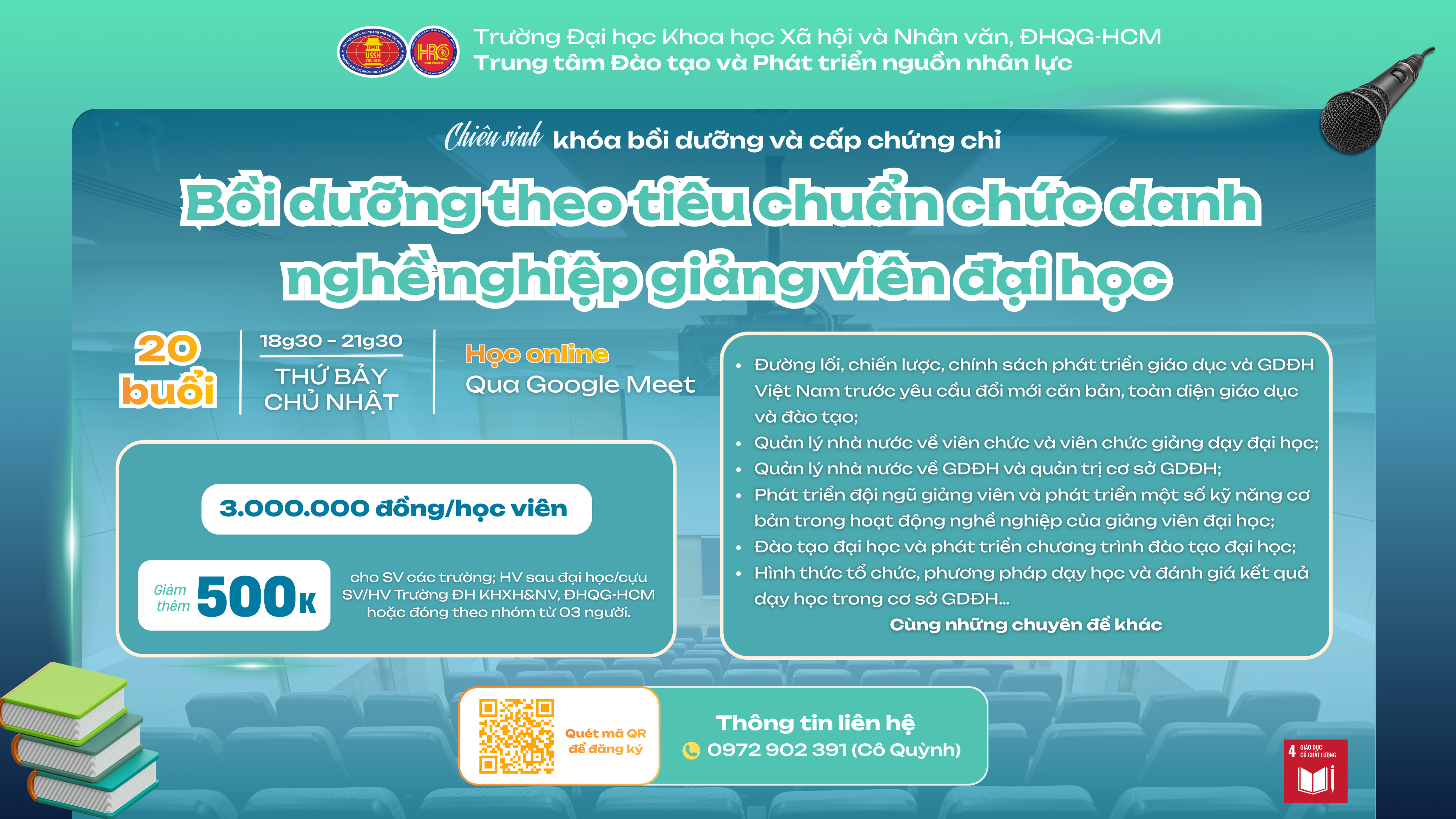 THÔNG TIN KHÓA BỒI DƯỠNG THEO TIÊU CHUẨN CHỨC DANH NGHỀ NGHIỆP GIẢNG VIÊN ĐẠI HỌC: