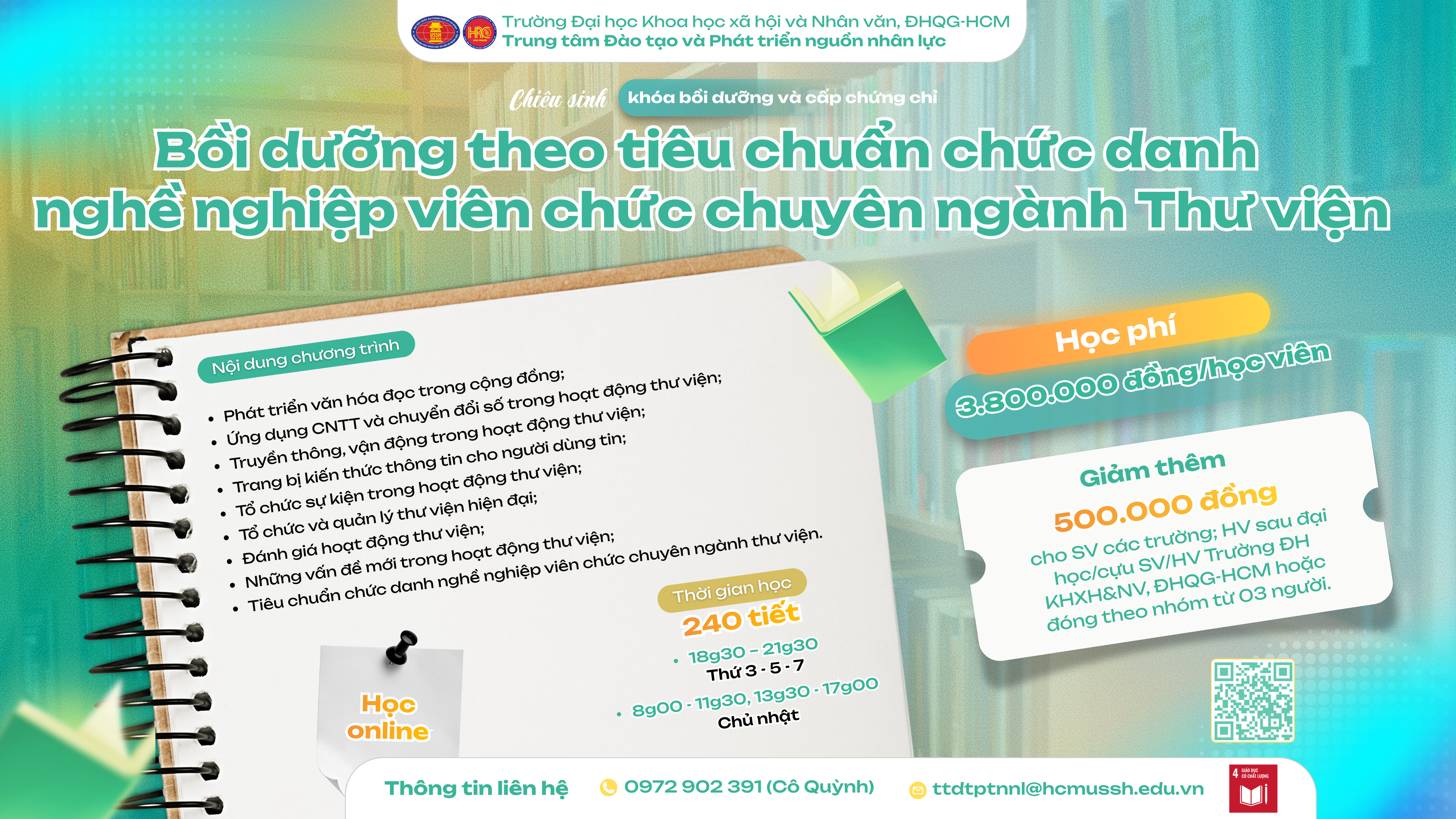 Bồi dưỡng theo tiêu chuẩn chức danh nghề nghiệp viên chức chuyên ngành Thư viện (Khóa 3) – Dự kiến khai giảng 11/04/2026