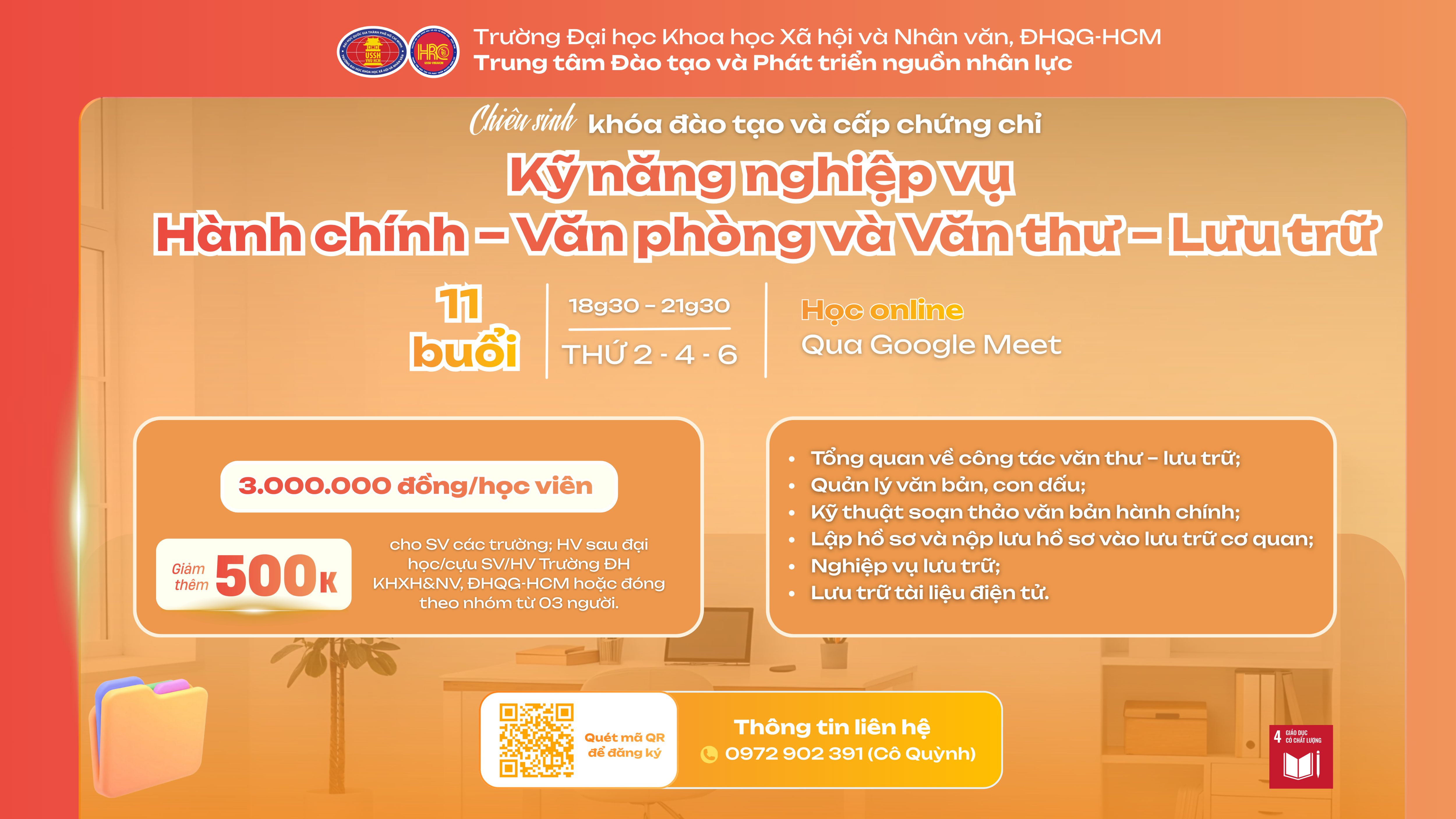 Kỹ năng nghiệp vụ Hành chính – Văn phòng và Văn thư – Lưu trữ (Khóa 23) – Dự kiến khai giảng 01/06/2026