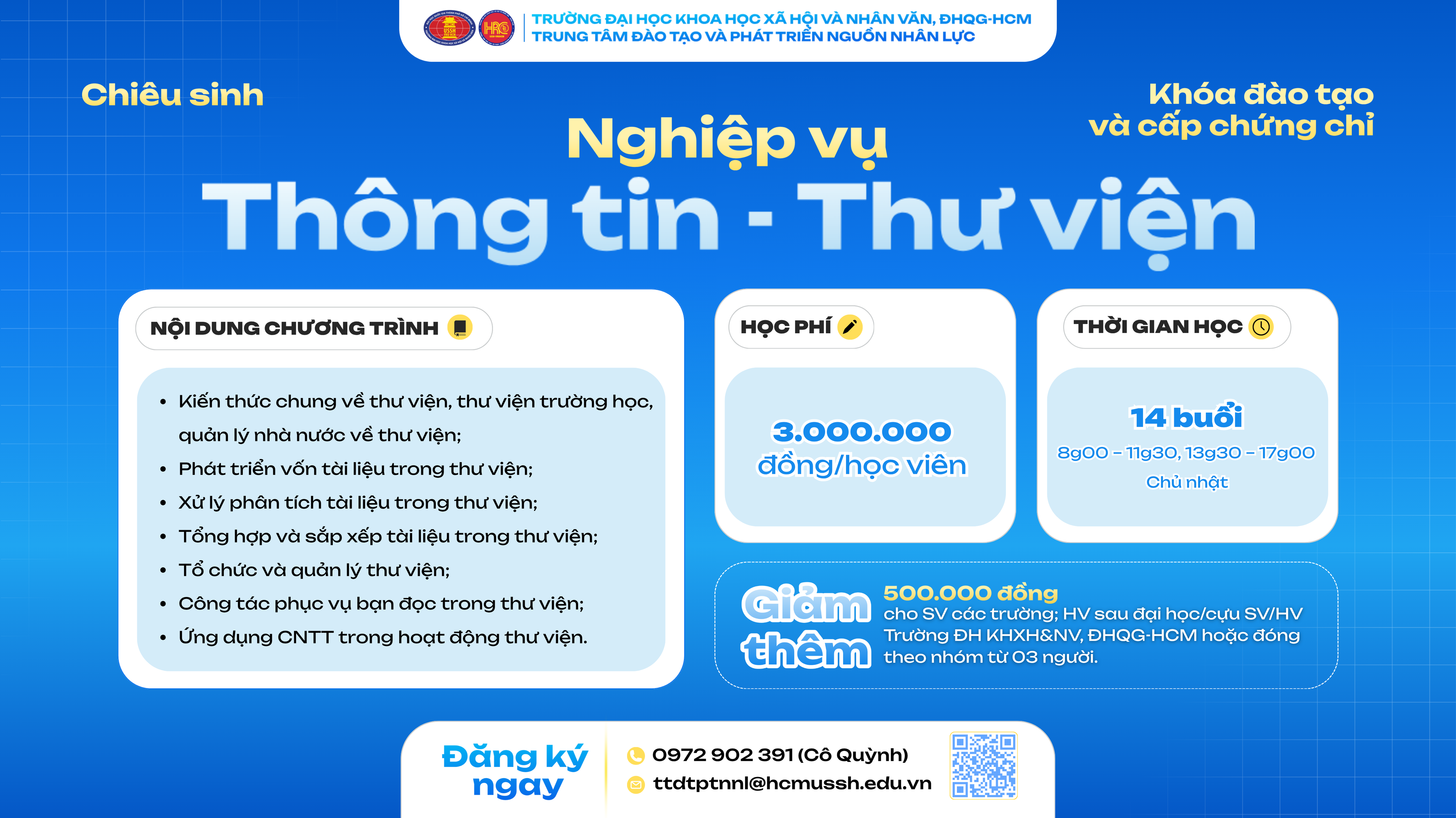Nghiệp vụ Thông tin – Thư viện (Khóa 24) – Dự kiến khai giảng 21/12/2025