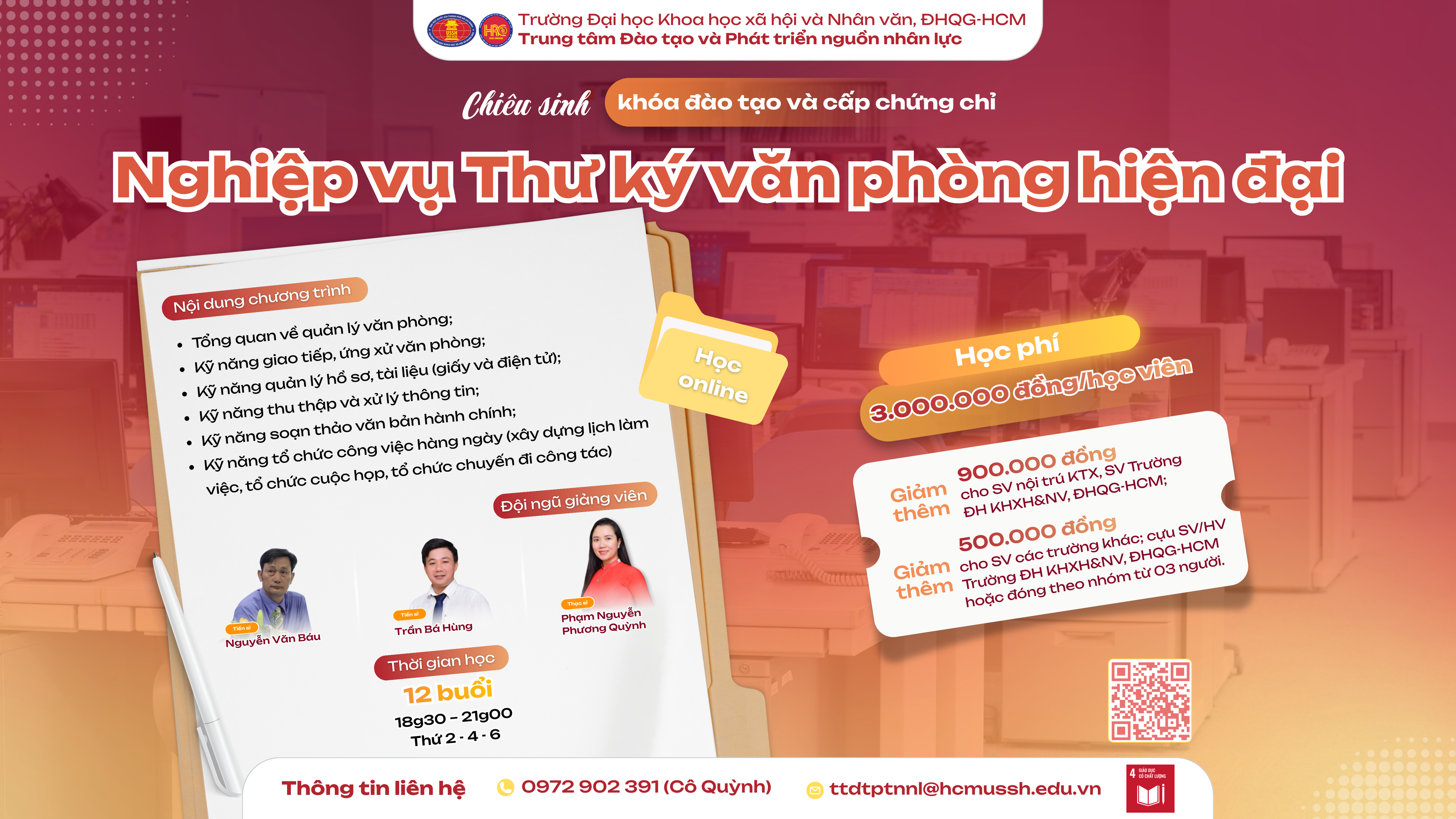 THÔNG TIN KHÓA ĐÀO TẠO NGHIỆP VỤ THƯ KÝ VĂN PHÒNG HIỆN ĐẠI: