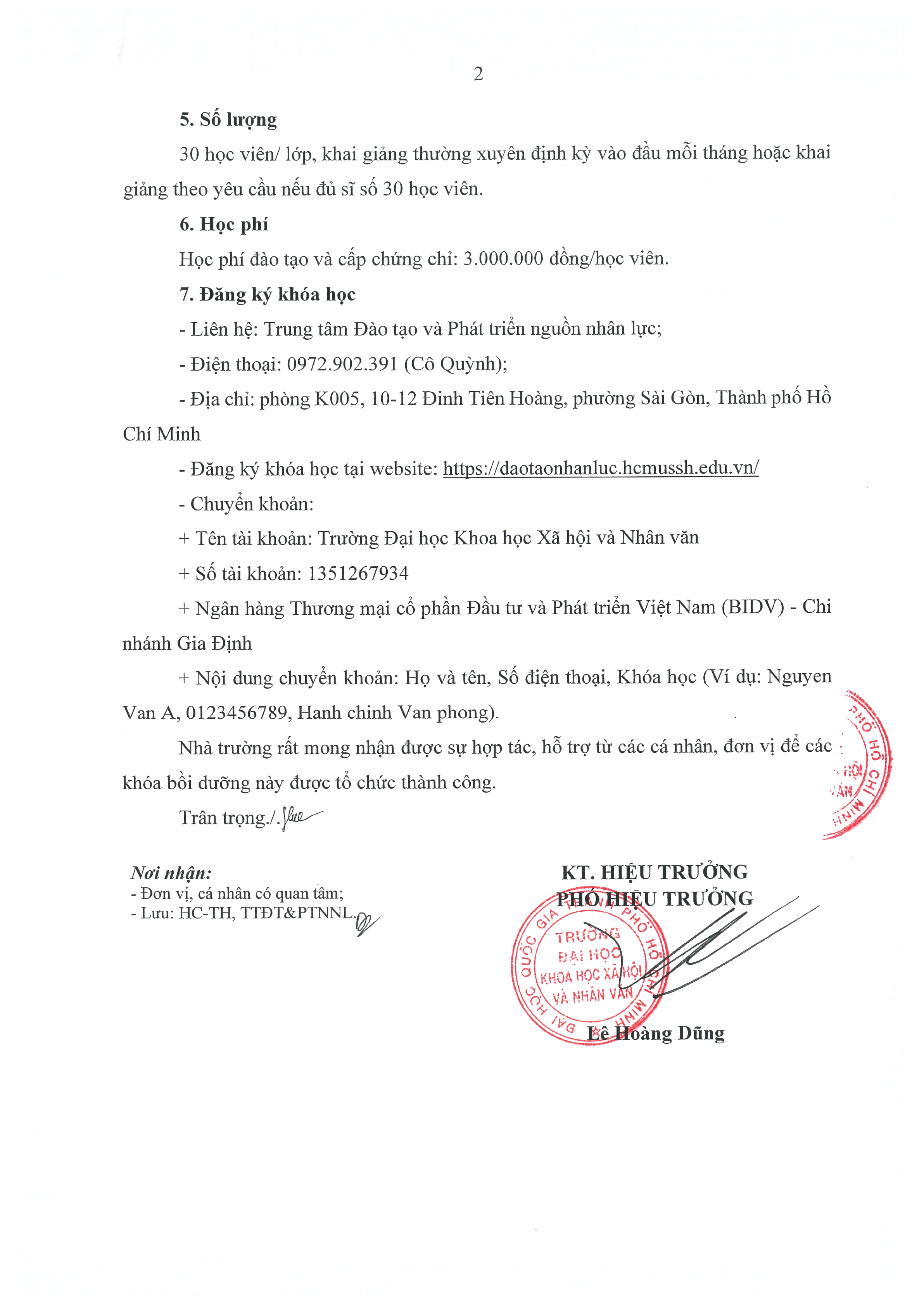 Thông báo về việc chiêu sinh các khóa đào tạo ngắn hạn năm 2026