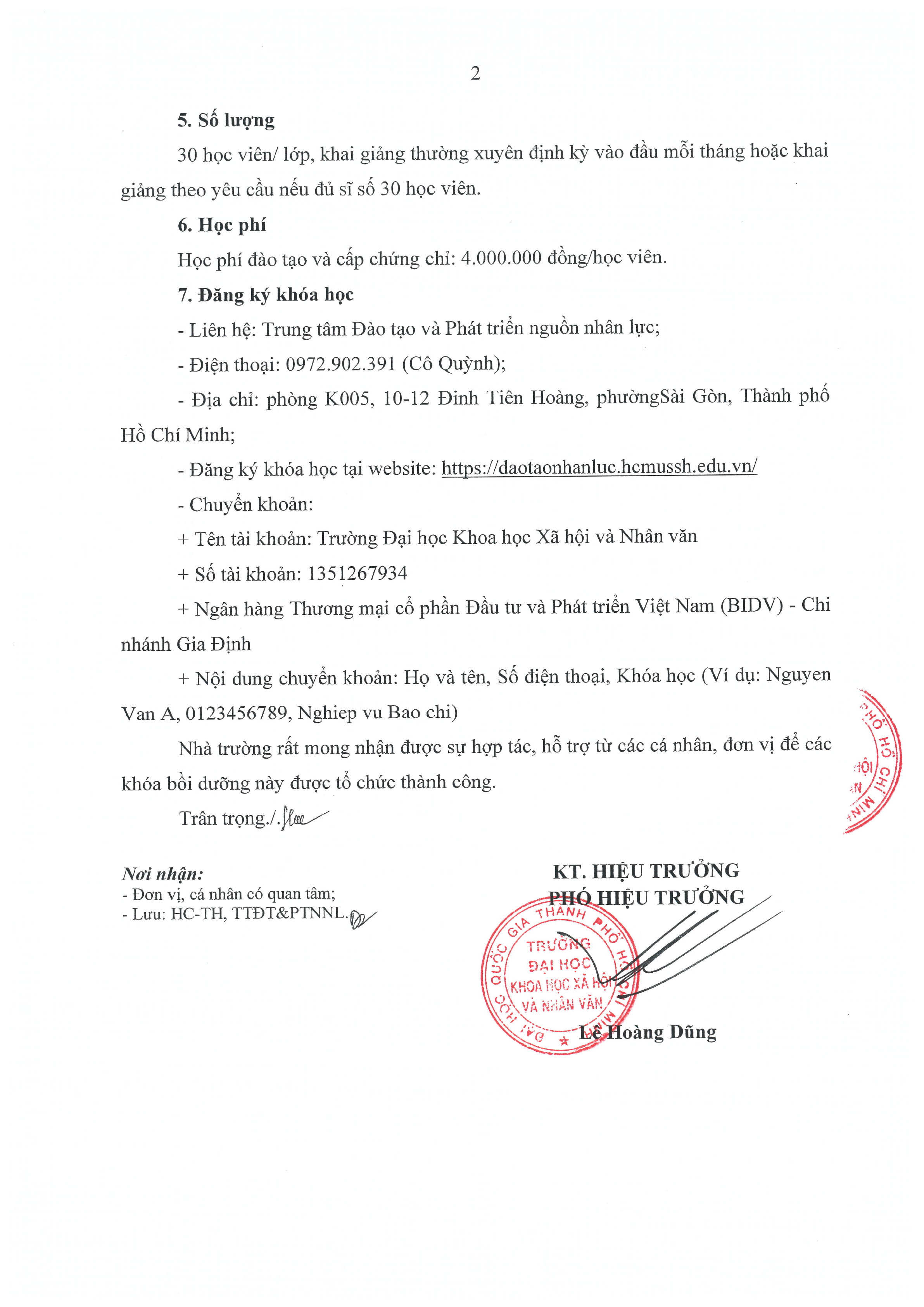 Thông báo về việc chiêu sinh các khóa đào tạo ngắn hạn năm 2026